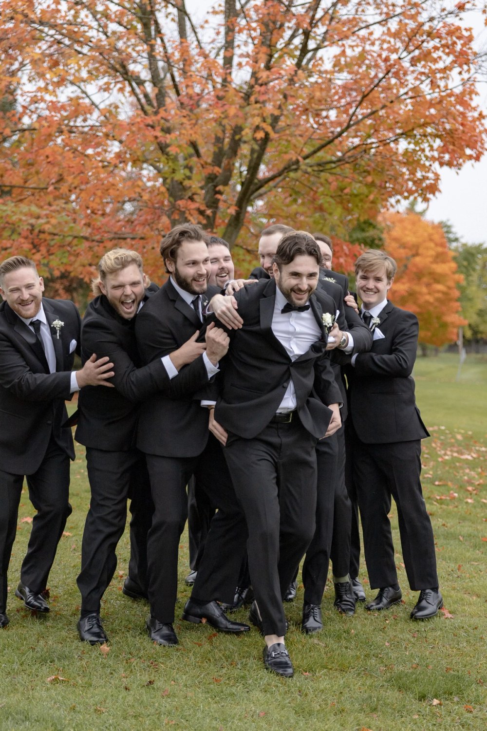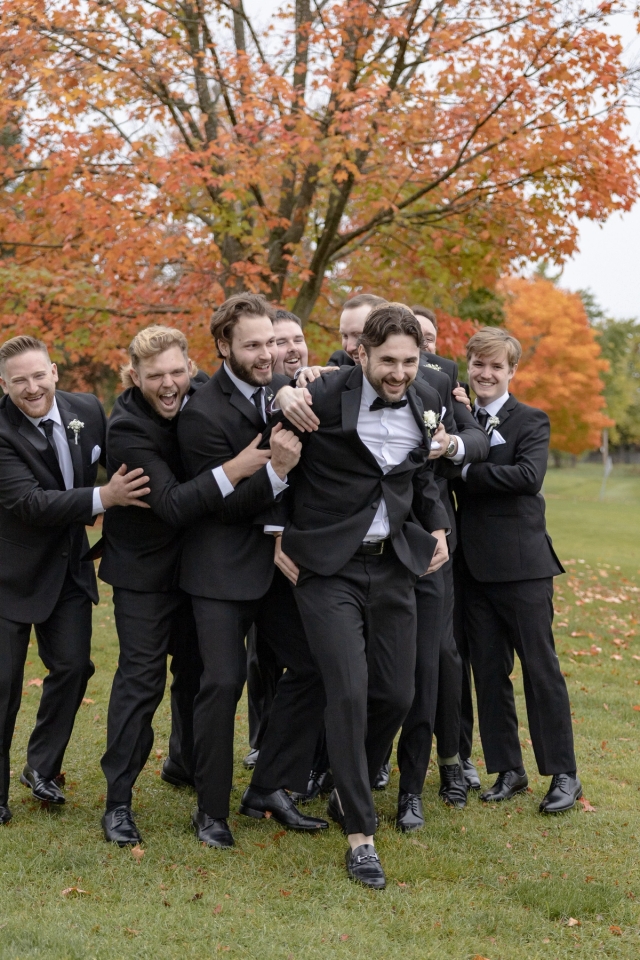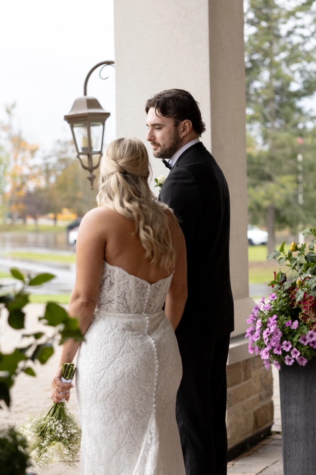 At the Barrie Country Club, we photographed outdoors, indoors, and at sunset. Although it ended up being rainy and no sun to set, we worked with the videography team to create a "golden hour" using artificial lighting. Each part of the day required attention to light and atmosphere. When choosing your photographer, look for work that shows versatility in similar environments to your wedding.